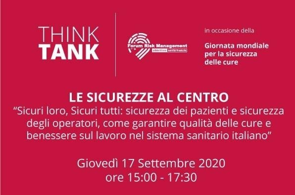 Nell’ambito degli appuntamenti organizzati in previsione del Forum Risk Management 15, “l’evento della sanità in Italia”, in programma dal 15 al 18 dicembre ad Arezzo, si comunica che sono aperte le iscrizioni, sia standard che ECM (crediti 3,6), per il think tank che si terrà, in modalità webinar, in live streaming sulla piattaforma Zoom, il prossimo 17 settembre, a partire dalle ore 15 e fino alle 17,30, in occasione della Giornata mondiale per la sicurezza delle cure. Oggetto della proposta formativa: “come garantire qualità delle cure e benessere sul lavoro nel sistema sanitario“. Perché, come scrivono gli organizzatori stessi: “Sicuri loro, sicuri tutti: sicurezza dei pazienti e sicurezza degli operatori“.