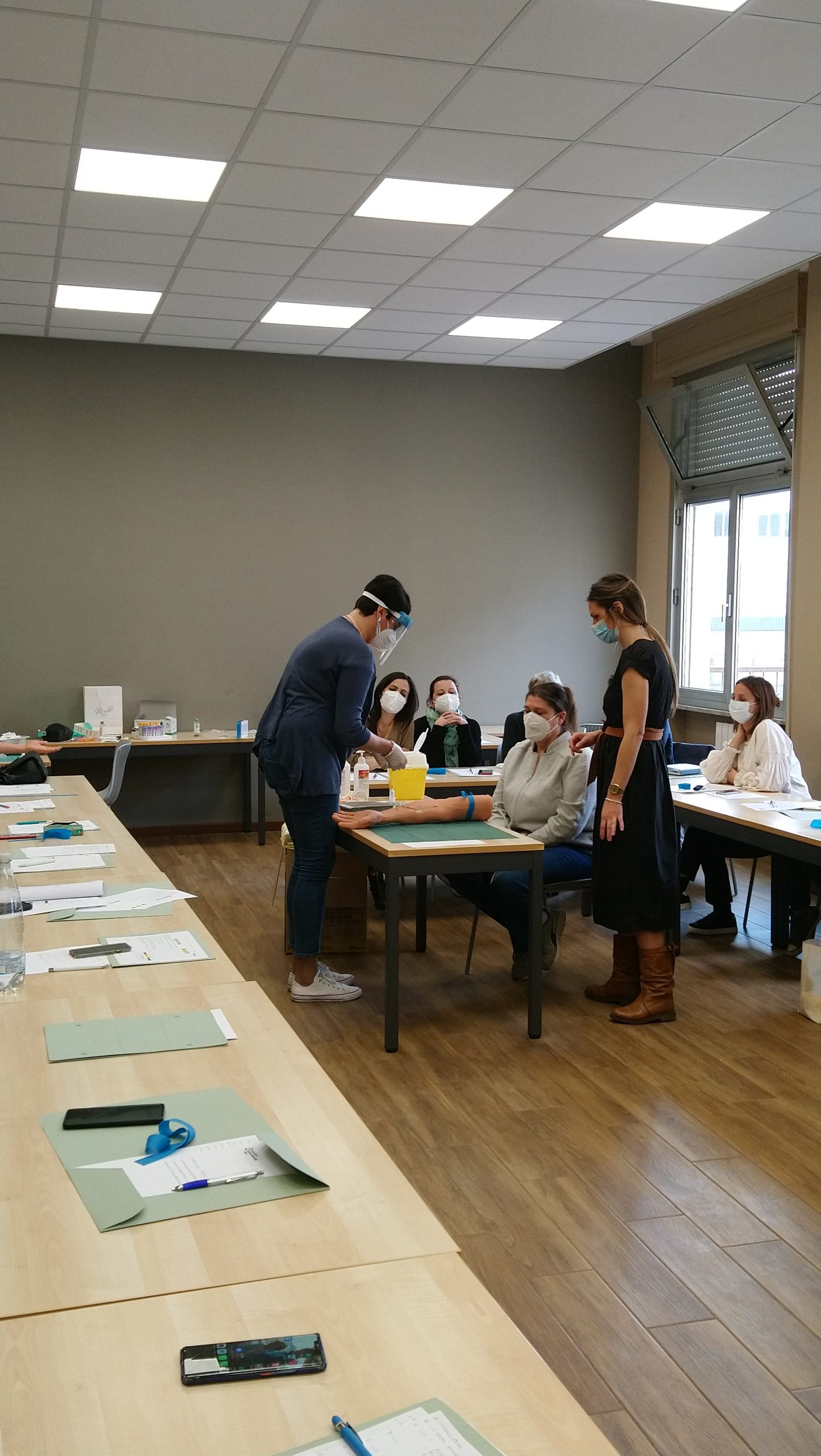 Nel progettare il percorso formativo è stato fondamentale riflettere non solo sulla manovra ma su tutte le fasi che caratterizzano l’esecuzione di un prelievo venoso, dalla preparazione del materiale al riconoscimento della persona, dall’esecuzione su manichino prima ed in sala prelievi poi, alla fase post analitica. Per tale motivo la giornata di “laboratorio” è stata esperienziale, attraverso la simulazione si son potute sperimentare anche le emozioni vissute e prepararsi alle ore di pratica in sala prelievi.