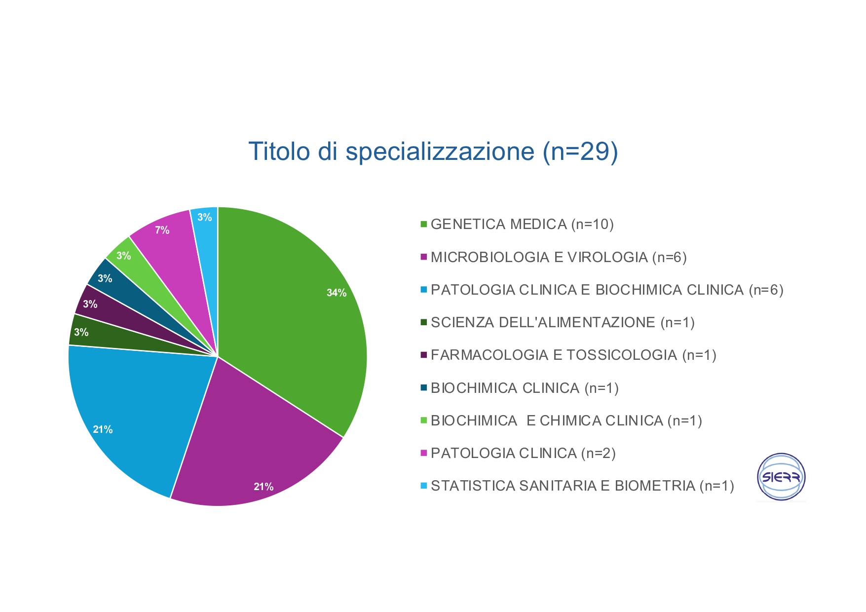Parallelamente, emerge un altro dato preoccupante relativo alla formazione. Solo l’8% degli intervistati ha conseguito o sta conseguendo una scuola di specializzazione affine al settore, titolo che risulta obbligatorio per l’accesso alle posizioni nel settore pubblico. La maggior parte degli embriologi ha solo il diploma di laurea (65%), e solo una parte di essi ha integrato la laurea con un Master (22%). La scarsa presenza di un percorso formativo specialistico dedicato alla figura dell’embriologo clinico evidenzia la necessità di sviluppare percorsi ad hoc che consentano l’acquisizione del titolo di specializzazione e che possano formare professionisti altamente qualificati, con competenze specifiche adeguate alla crescente complessità che caratterizza questo settore.