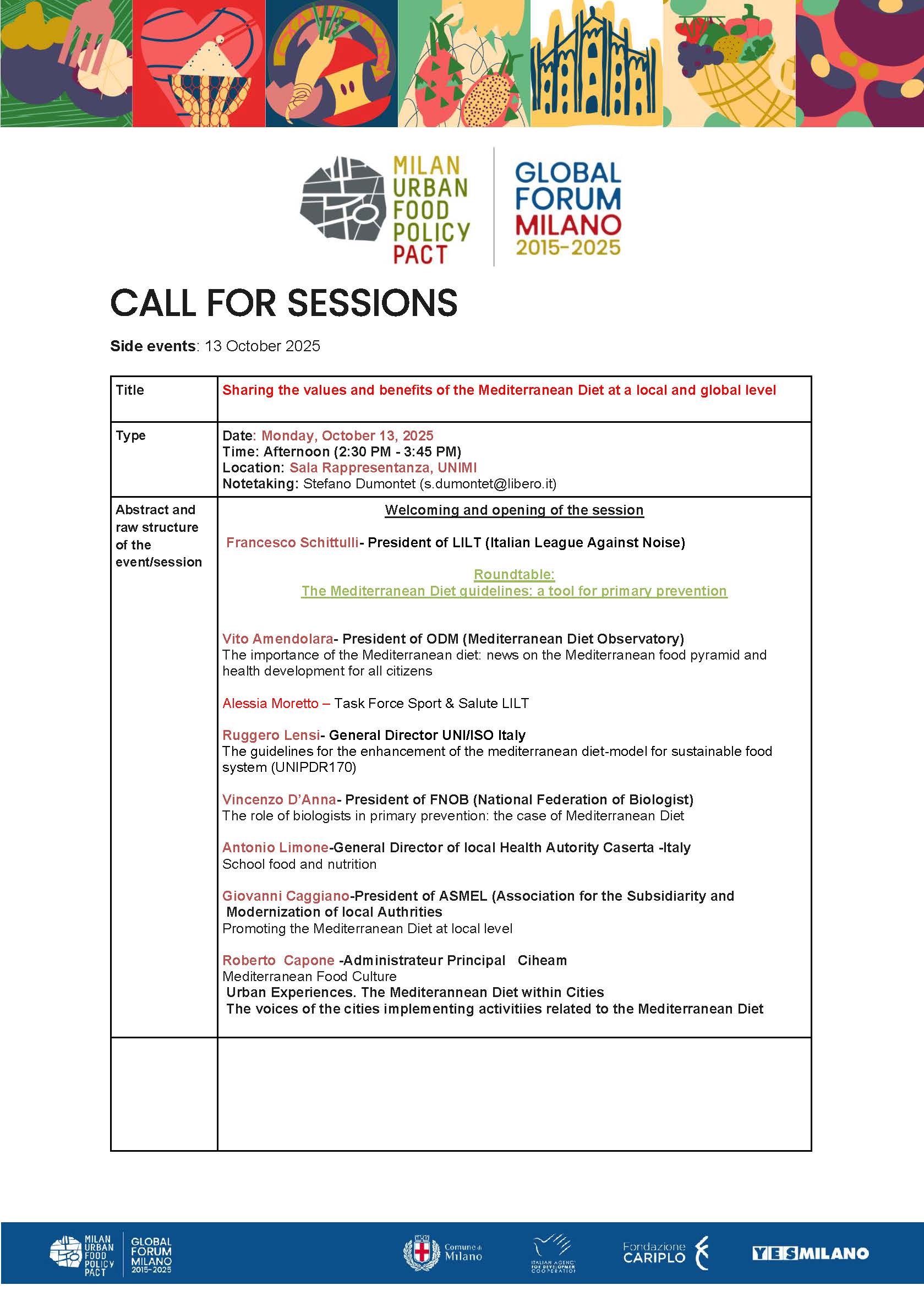 Tra i relatori, tra cui Vito Amendolara, Presidente Osservatorio Dieta Mediterranea, Vincenzo D’Anna, Presidente FNOB (Federazione Nazionale degli Ordini dei Biologi), Francesco Schittulli, Presidente LILT (Lega Italiana per la Lotta contro i Tumori) e Giovanni Caggiano, Presidente ASMEL (Associazione per la Sussidiarietà e la Modernizzazione degli Enti Locali), sarà presente Ruggero Lensi, Direttore Generale UNI, per illustrare l’importanza della normazione in questo ambito.
