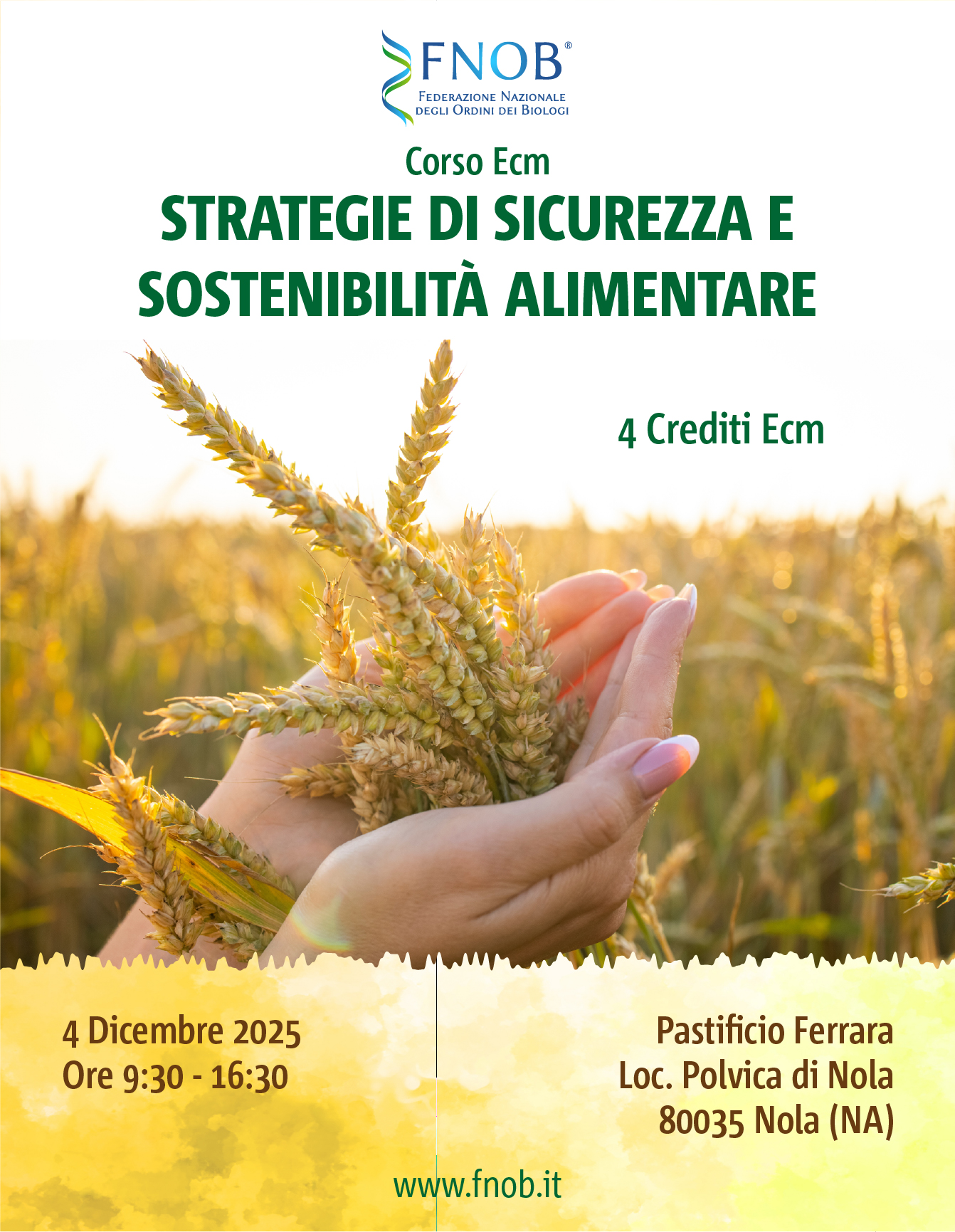 Il 4 dicembre si terrà l’evento Ecm organizzato dalla FNOB dal titolo “Strategie di Sicurezza e Sostenibilità Alimentare” presso il Pastificio Ferrara a Nola.
