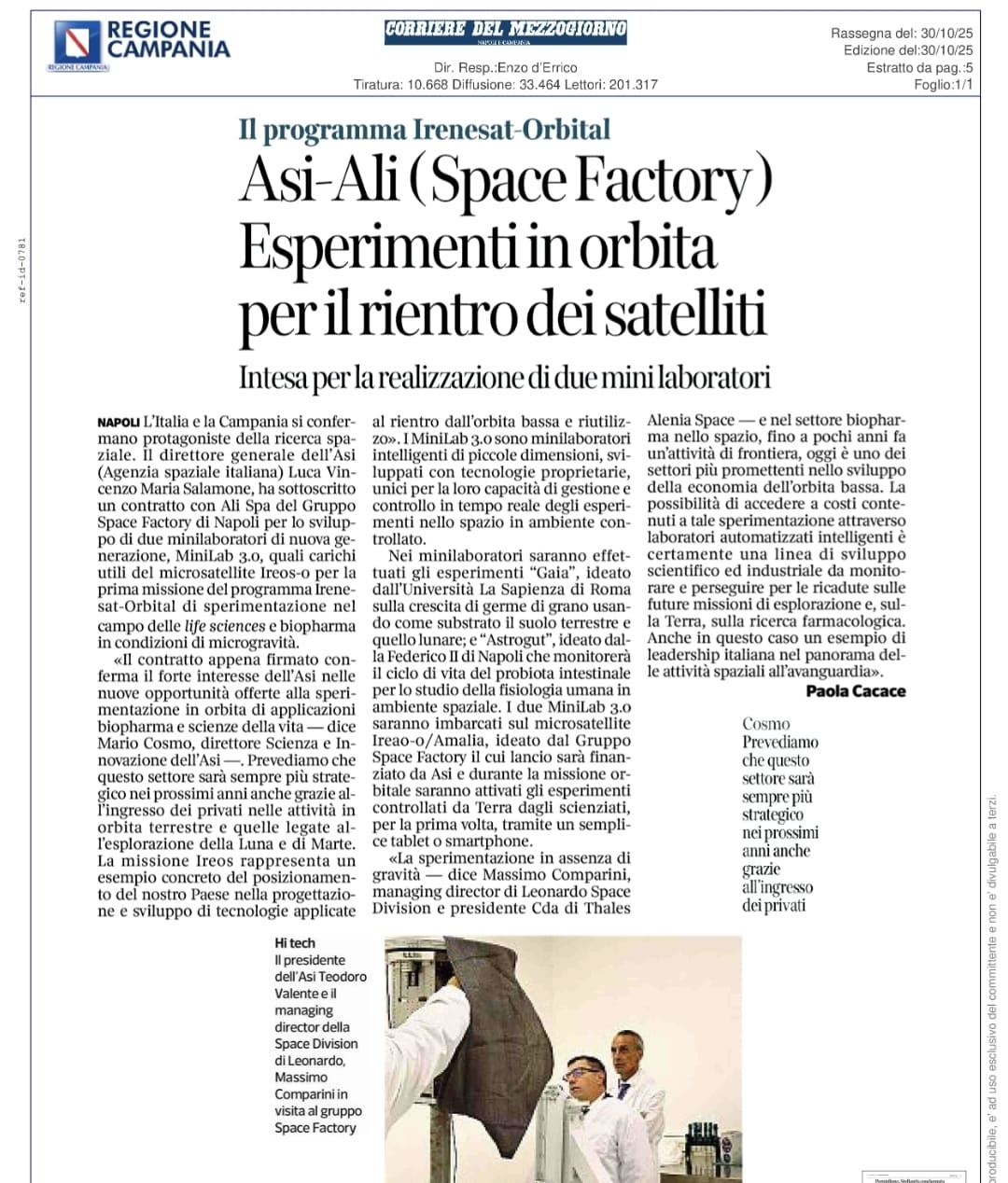 L’Agenzia Spaziale Italiana, in collaborazione con Space Factory di Napoli, ha avviato un programma d’avanguardia focalizzato sulla sperimentazione biologica in microgravità attraverso il progetto Irenesat-Orbital. Il lancio dei nuovi MiniLab 3.0 permetterà di condurre esperimenti su sistemi biopharma e di life sciences direttamente nello spazio, favorendo lo studio del ciclo di vita dei probiotici intestinali e la fisiologia umana in condizioni estreme.
