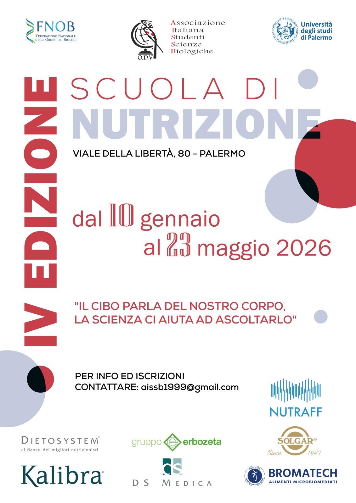 A breve inizierà la IV Edizione della Scuola di Nutrizione Umana, organizzata dalla FNOB, dall’AISSB – Associazione Italiana Studenti Scienze Biologiche e dall’Università di Palermo. Un percorso formativo che negli anni è diventato un appuntamento imprescindibile per chi desidera crescere nel mondo della nutrizione e delle scienze della salute.