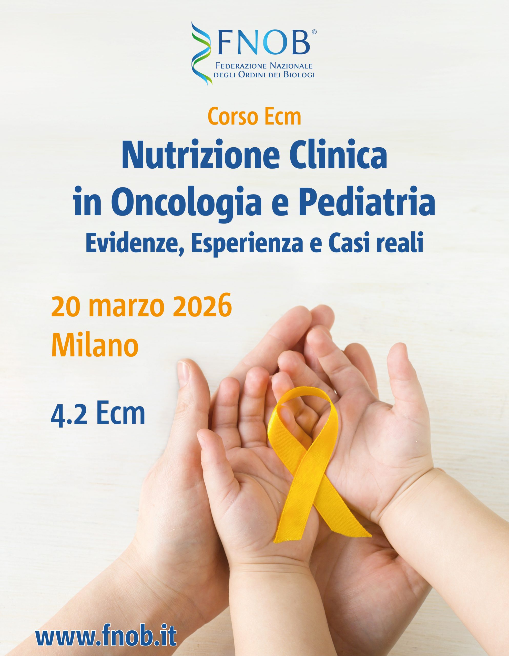 Il 20 marzo 2026, a Milano, la Fnob organizza il corso dal titolo “Nutrizione Clinica in Oncologia e Pediatria Evidenze, Esperienza e Casi Reali”.
